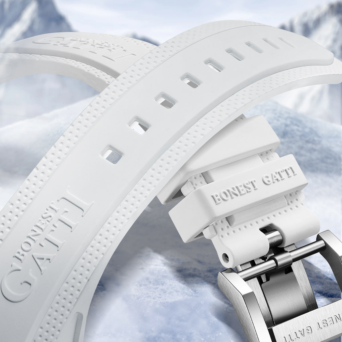 The fluororubber strap has a delicate touch, is light and wear-resistant, and the porous design allows for free adjustment of size. It fits the wrist perfectly without any restraint.