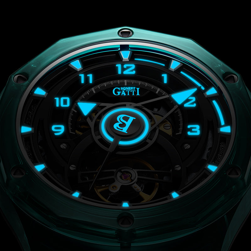 The wtach hands, scale and center are all inlaid with luminous materials, which are safer and more stable than ordinary luminous powder and fluorescent coating. During the day, electrons jump to high energy levels and absorb energy under the sunlight; at night, electrons jump from high energy levels to low energy levels, emitting light without radiation.