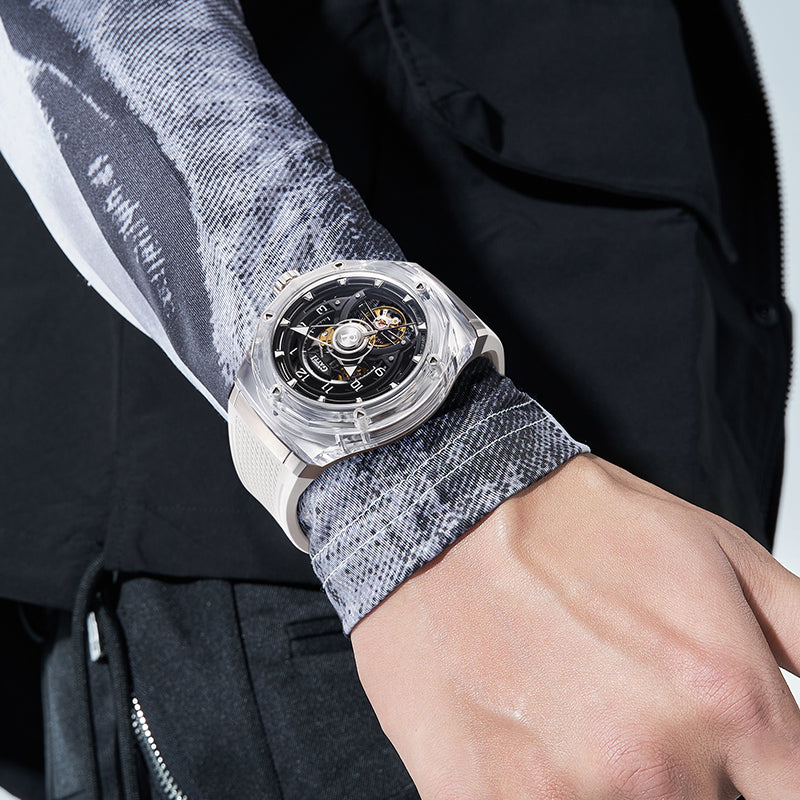 Both the front and back are covered with sapphire crystal, allowing us to see the automatic movement at a glance.