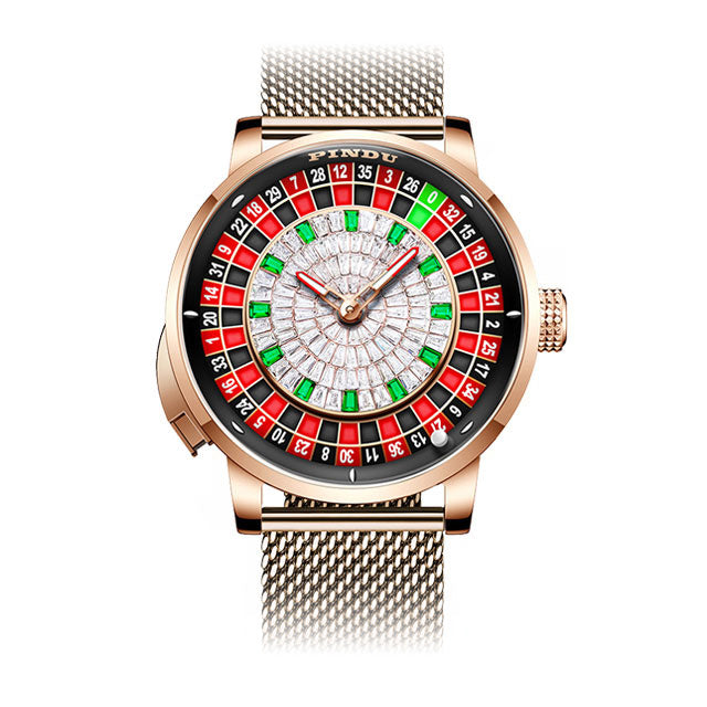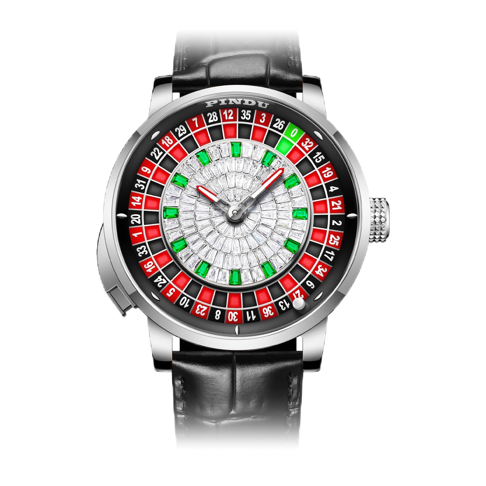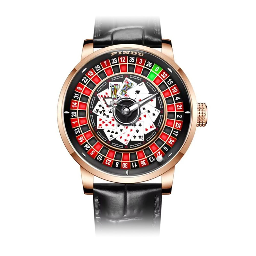 — In the 17th century, the mathematician Blaise Pascal invented the first roulette wheel.In the 19th century, roulette became the most popular casino entertainment in Europe and the United States. The spinning wheel and the rolling orb always attract the most attention.Now, this fascinating activity will continue on your wrist. The outer ring of the dial is decorated with a roulette wheel that can rotate with changes in gravity.